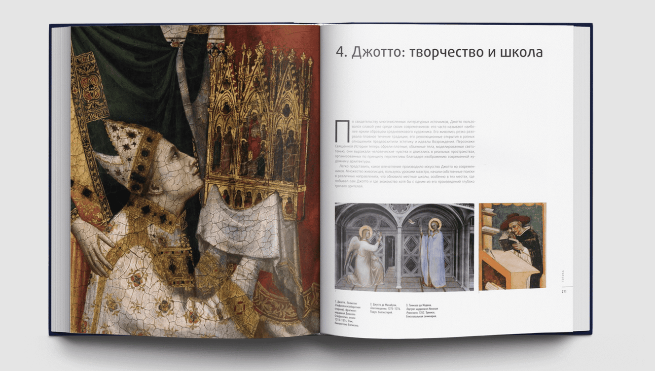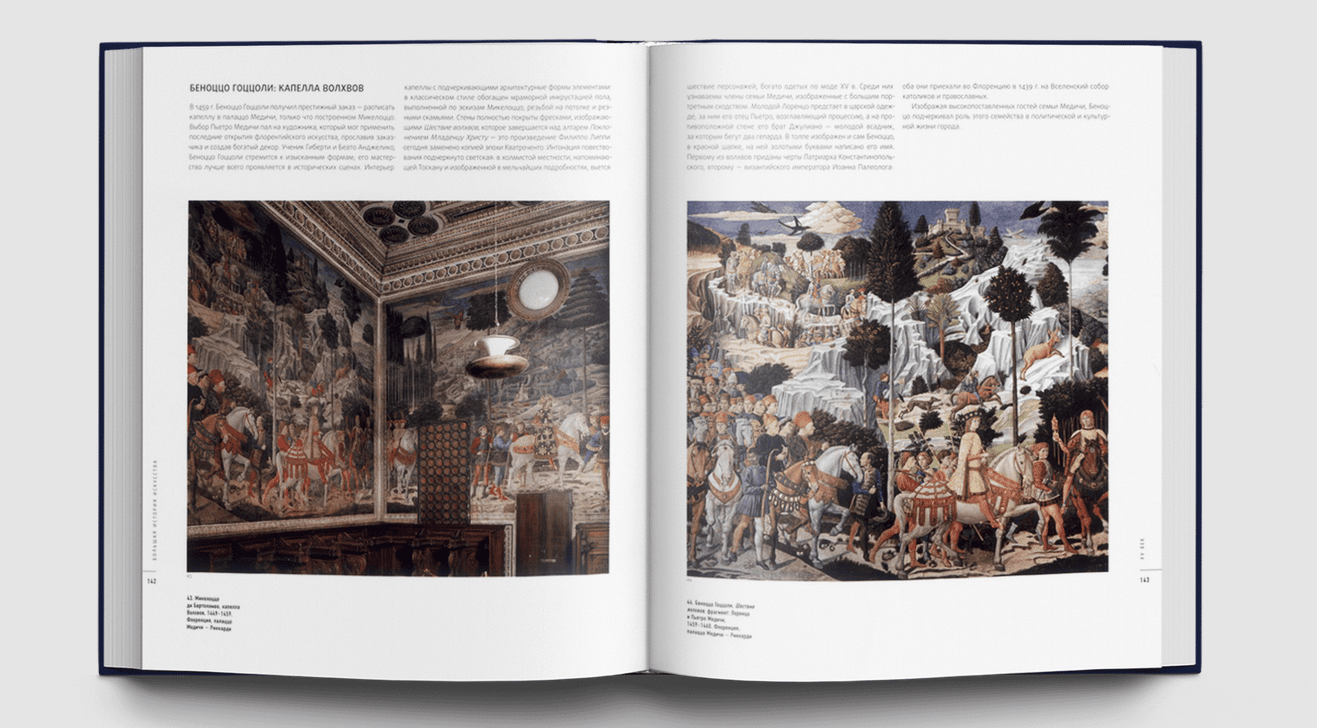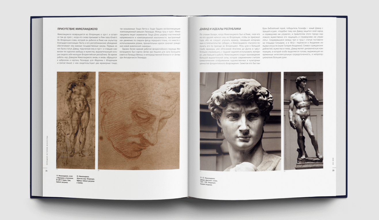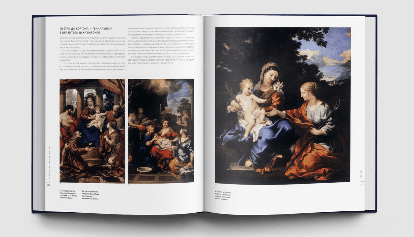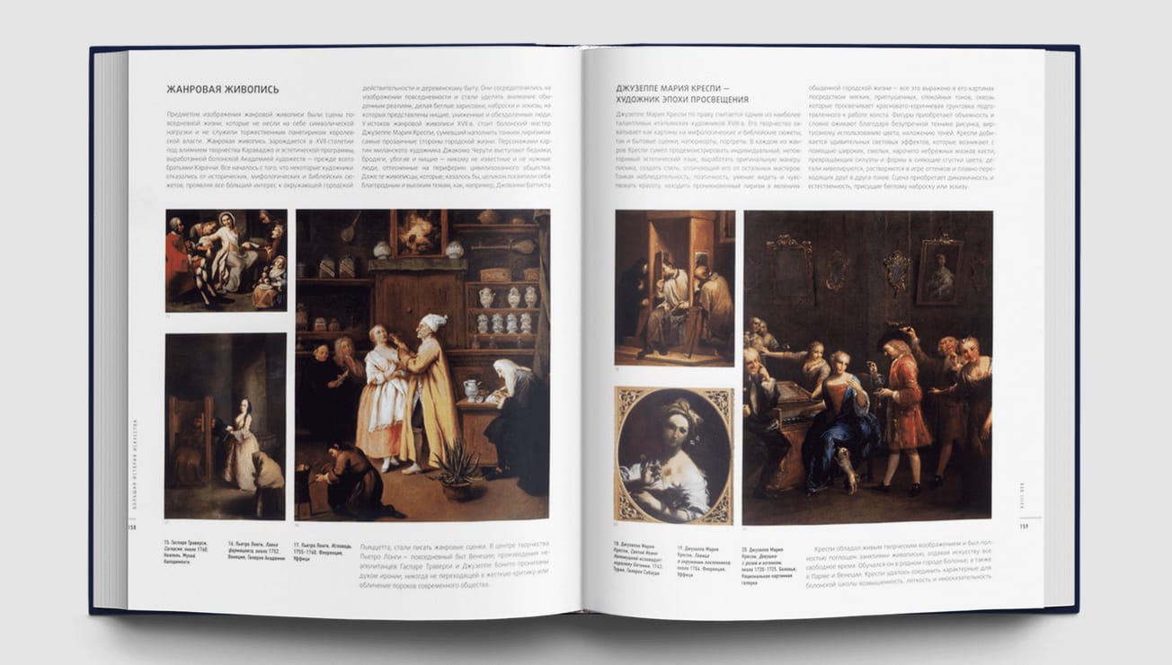 Тексты комментариев «Большой Истории Искусства» написаны ведущими итальянскими искусствоведами и историками искусств, профессорами Университета Флоренции (Аличе Карточчи, Глория Розати, Чинция Кайаццо, Джандоменико де Томмазо, Джулия Маруччи, Рикардо Белкари, Кристина Сиригатти, Марчелла Англани и др.). Популярная, демократичная подача материала при максимальной его информативности превращает издание в уникальную коллекцию, не имеющую аналогов на отечественном книжном рынке. Большая История Искусства – собрание книг, которое позволяет любому человеку научиться «читать» полотна мастеров, не обращаясь к помощи специалиста, то есть самостоятельно овладеть навыками прочтения сюжета, композиции картины и дать анализ произведения — стать настоящим знатоком и свободно ориентироваться в выбранной теме. Большая История Искусства основывается на принципах сэра Эрнста Гомбриха, фантастический успех книг которого доказывает: стремление увлечь читателя словами и образами работает только тогда, когда язык повествования ясен и прост, а сведения — достоверны. История искусства — отнюдь не нудная череда фактов, понятий или мудреных теорий; история искусства — это дерзкое, захватывающее путешествие в глубь эпох, к разным народам, это странствие между памятников и картин, технических приемов и стилей, поражающее многообразием изысканности и красоты. 16-томная Библиотека «Большой Истории Искусства» позволяет совершить такое путешествие не только благодаря увлекательным текстам, написанным известными историками искусства, но и огромному количеству иллюстраций, — а их более шести с половиной тысяч! — дающих возможность увидеть тот или иной предмет, о котором идет речь на страницах книги. Каждый том Библиотеки содержит именной указатель, хронологию и библиографию, что, при желании, оставляет возможность расширить и закрепить полученные знания.