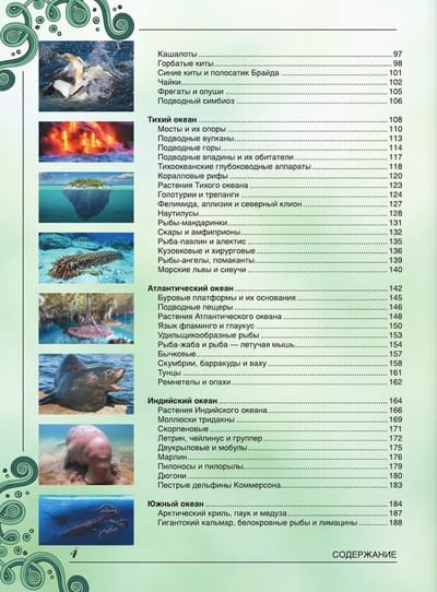 Чтобы узнать, какие тайны скрываются под толщей воды Мирового океана, покрывающего две трети земной поверхности, достаточно открыть эту книгу. Здесь представлен подводный мир во всем его разнообразии — животные, растения, неповторимые природные ландшафты и даже удивительные объекты, созданные руками человека. Увидеть в обычной жизни всё это очень сложно, зато на уникальных фотографиях можно рассмотреть в мельчайших подробностях. Содержательные статьи, описывающие все пять океанов нашей планеты, а также пресноводные водоемы, поразят вас множеством занимательных фактов.
