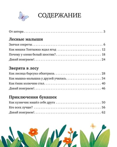 В этой книге вас ждут увлекательные сказки про дружбу пушистых малышей и приключения зверят в лесу. Вместе с героями сказок ваш малыш узнает, какую пользу природе приносят разные животные и как важно заботиться о близких, а также научится терпению, хорошим манерам и умению дружить.