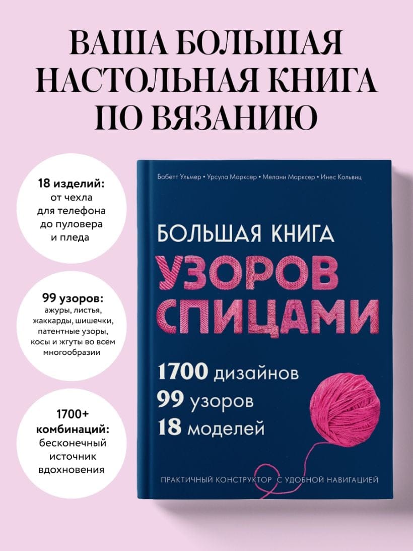 Большая книга узоров спицами. 1700 дизайнов, 99 узоров, 18 моделей. Практичный конструктор с удобной навигацией