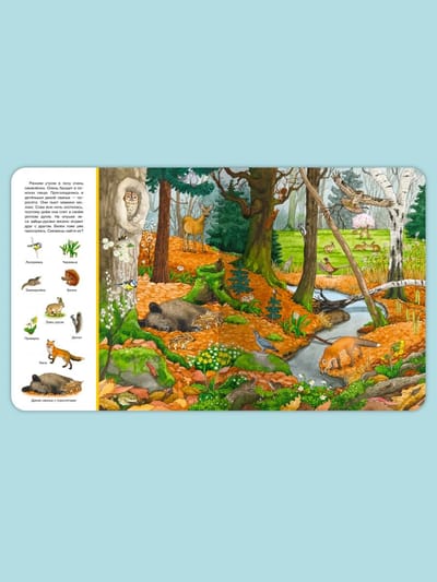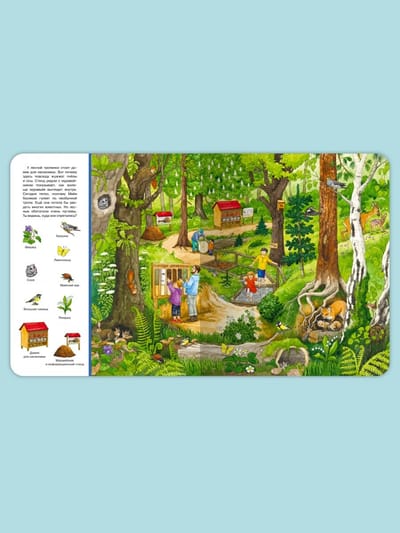 Совершите с малышом самое увлекательное путешествие в лес! Познавательный виммельбух «Найди и покажи. Большая книга. В лесу» поможет малышам в игровой форме расширить свой словарный запас и освоить навыки важного умения составлять рассказы по картинкам. Книга увлекательно расскажет и покажет, что происходит в лесу в каждое из времён года, кто населяет лес, как животные запасаются на зиму, кто заботится о деревьях и кустарниках, что можно увидеть в горах, а что – со смотровой вышки и многое-многое другое. А любимое «Найди и покажи» на каждом развороте попутно будет концентрировать и развивать внимание даже самого непоседливого малыша. Яркая книга увеличенного формата напечатана на высококачественном картоне повышенной прочности с безопасными закруглёнными краями страниц. Благодаря красочным панорамным иллюстрациям дети легко запомнят материал, а маленькие истории и пояснения помогут им найти ответы на самые разные, но неизменно интересные вопросы. Такой подарок точно придётся по душе!