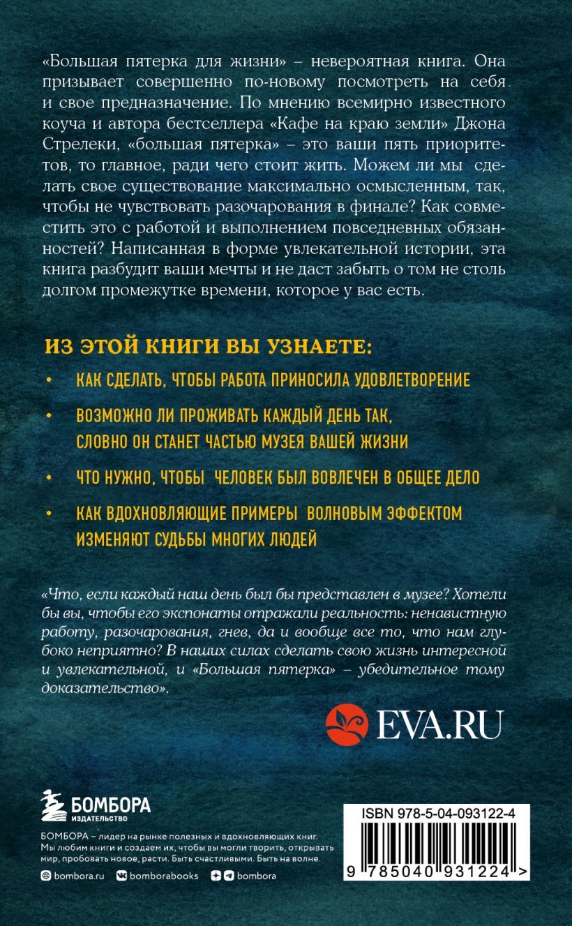 Наверняка у вас есть список из пяти вещей, которые сделают вас безмерно счастливыми и воплотят вашу заветную мечту. А что, если это не пустые надежды, а самая настоящая реальность? В этой книге талантливый бизнесмен Томас Дерейл делится секретом, как стать хозяином своей жизни и найти вдохновение для реализации самых смелых желаний и стремлений. Написанный знаменитым писателем, коучем и автором бестселлера "Кафе на краю земли" Джоном Стрелеки, роман рассказывает о последних днях одного из самых успешных людей в мире и учит управлять своей судьбой, воодушевлять окружающих и помогает найти дело всей своей жизни.