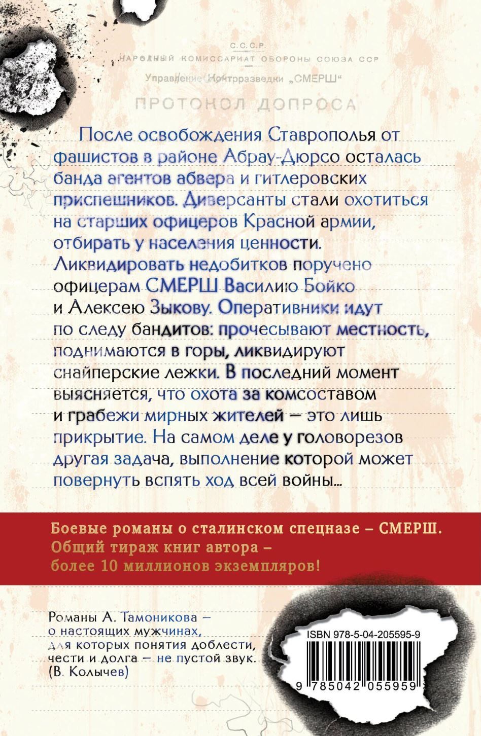 После освобождения Ставрополья от фашистов в районе Абрау-Дюрсо осталась банда агентов абвера и гитлеровских приспешников. Диверсанты стали охотиться на старших офицеров Красной Армии, отбирать у населения ценности. Ликвидировать недобитков поручено офицерам СМЕРШа Василию Бойко и Алексею Зыкову. Оперативники идут по следу бандитов: прочесывают местность, поднимаются в горы, ликвидируют снайперские лежки. В последний момент выясняется, что охота за комсоставом и грабежи мирных жителей — это лишь прикрытие. На самом деле у головорезов другая задача, выполнение которой может повернуть вспять ход всей войны…