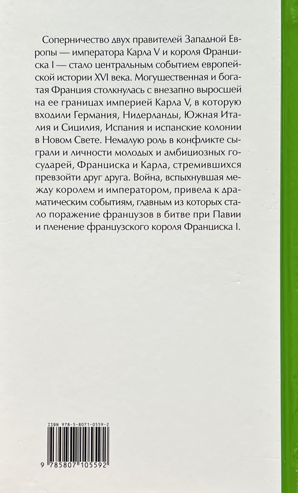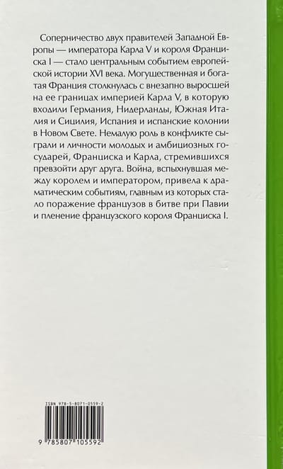 Соперничество двух правителей Западной Европы — императора Карла V и короля Франциска I — стало центральным событием европейской истории XVI века. Могущественная и богатая Франция столкнулась с внезапно выросшей на ее границах империей Карла V, в которую входили Германия, Нидерланды, Южная Италия и Сицилия, Испания и испанские колонии в Новом Свете. Немалую роль в конфликте сыграли и личности молодых и амбициозных государей, Франциска и Карла, стремившихся превзойти друг друга. Война, вспыхнувшая между королем и императором, привела к драматическим событиям, главным из которых стало поражение французов в битве при Павии и пленение французского короля Франциска I.