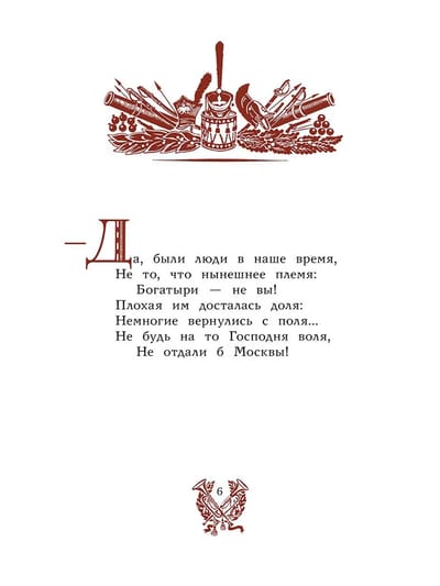 Известное стихотворение Михаила Юрьевича Лермонтова о знаменитом сражении Отечественной войны 1812 года с иллюстрациями выдающегося художника Владимира Гавриловича Шевченко, который сумел передать масштаб битвы, изобразить исторически верное расположение участников на Бородинском поле, соблюсти все детали вооружения, амуниции и обмундирования войск.