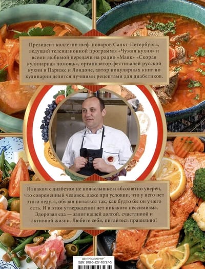 Президент коллегии шеф-поваров Санкт-Петербурга, ведущий телевизионной программы «Чужая кухня» и всеми любимой передачи на радио «Маяк» «Скорая кулинарная помощь», организатор фестивалейсской кухни в Париже и Лондоне, автор популярных книг по кулинарии делится лучшими рецептами для диабетиков.