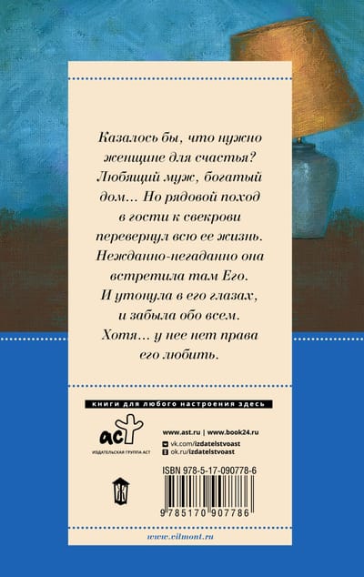 Казалось бы — что нужно женщине для счастья? Любящий муж, богатый дом... Но рядовой поход в гости к свекрови перевернул всю ее жизнь. Нежданно-негаданно она встретила там Его. И утонула в его глазах, и забыла обо всем. Хотя... у нее нет права его любить.