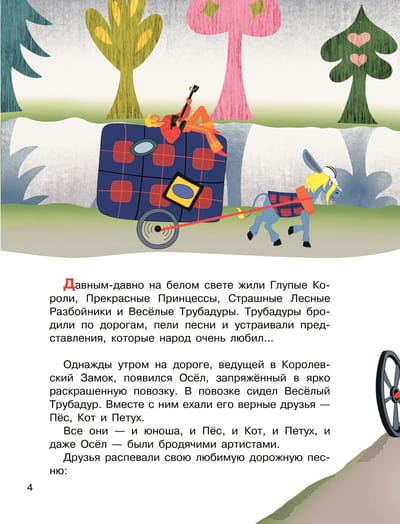 В 1969 году на экраны вышел мультфильм «Бременские музыканты», созданный по мотивам сказки братьев Гримм. Сценарий написали весёлые молодые авторы — актёр, режиссёр и писатель Василий Ливанов и поэт и драматург Юрий Энтин. Мультфильм был необычайно популярен, вся страна распевала песни Трубадура, Разбойников, Короля и Принцессы (стихи к песням тоже написал Юрий Энтин, а музыку — Геннадий Гладков). Эта книга — сказка с песнями по мультфильму «Бременские музыканты».