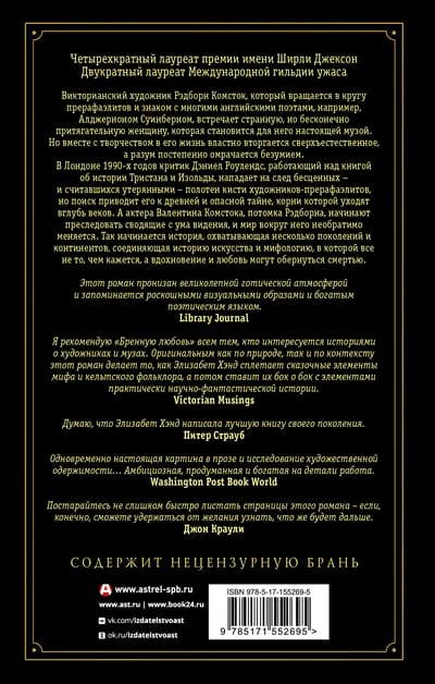 Викторианский художник Рэдборн Комсток, который вращается в кругу прерафаэлитов и знаком с многими английскими поэтами, например, Алджерноном Суинберном, встречает странную, но бесконечно притягательную женщину, которая становится для него настоящей музой. Но вместе с творчеством в его жизнь властно вторгается сверхъестественное, а разум постепенно омрачается безумием. В Лондоне 1990-х годов критик Дэниел Роулендс, работающий над книгой об истории Тристана и Изольды, нападает на след бесценных — и считавшихся утерянными — полотен кисти художников-прерафаэлитов, но поиск приводит его к древней и опасной тайне, корни которой уходят вглубь веков. А актера Валентина Комстока, потомка Рэдборна, начинают преследовать сводящие с ума видения, и мир вокруг него необратимо меняется. Так начинается история, охватывающая несколько поколений и континентов, соединяющая историю искусства и мифологию, в которой все не то, чем кажется, а вдохновение и любовь могут обернуться смертью.