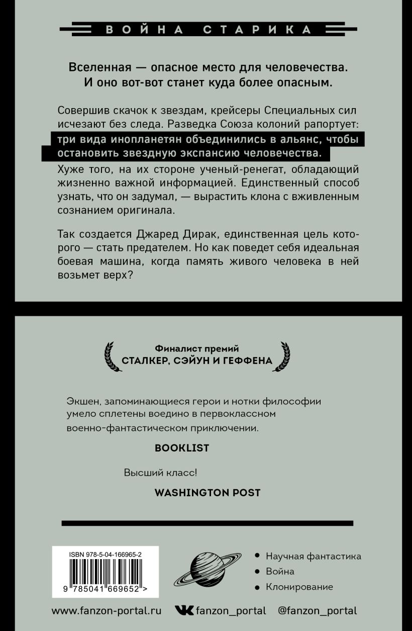 Крейсеры Специальных сил загадочно и бесследно исчезают, совершив скачок к звездам. Разведка Союза Колоний узнала, что готовится война с человечеством. Три вида инопланетян объединились в альянс, и людям не выстоять в одиночку. Бригады призраков на передовой. Они вычисляют предателя — Чарльза Бутэна, но тот вне досягаемости. Однако есть способ узнать, что он задумал — вырастить клона с вживленным сознанием. Так создается Джаред Дирак, у него одна цель — стать предателем. Но у каждого есть свобода воли, и Джаред делает свой выбор.