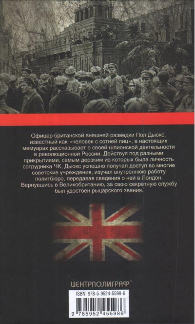 Офицер британской внешней разведки Пол Дьюкс, известный как «человек с сотней лиц», в настоящих мемуарах рассказывает о своей шпионской деятельности в революционной России. Действуя под разными прикрытиями, самым дерзким из которых была личность сотрудника ЧК, Дьюкс успешно получал доступ во многие советские учреждения, изучал внутреннюю работу Политбюро, передавая сведения о ней в Лондон. Вернувшись в Великобританию, за свою секретную службу был удостоен рыцарского звания.