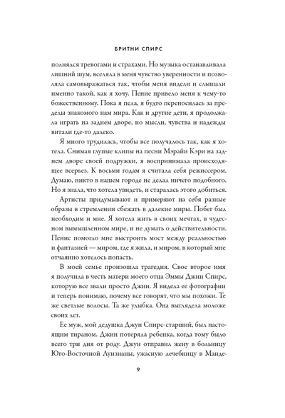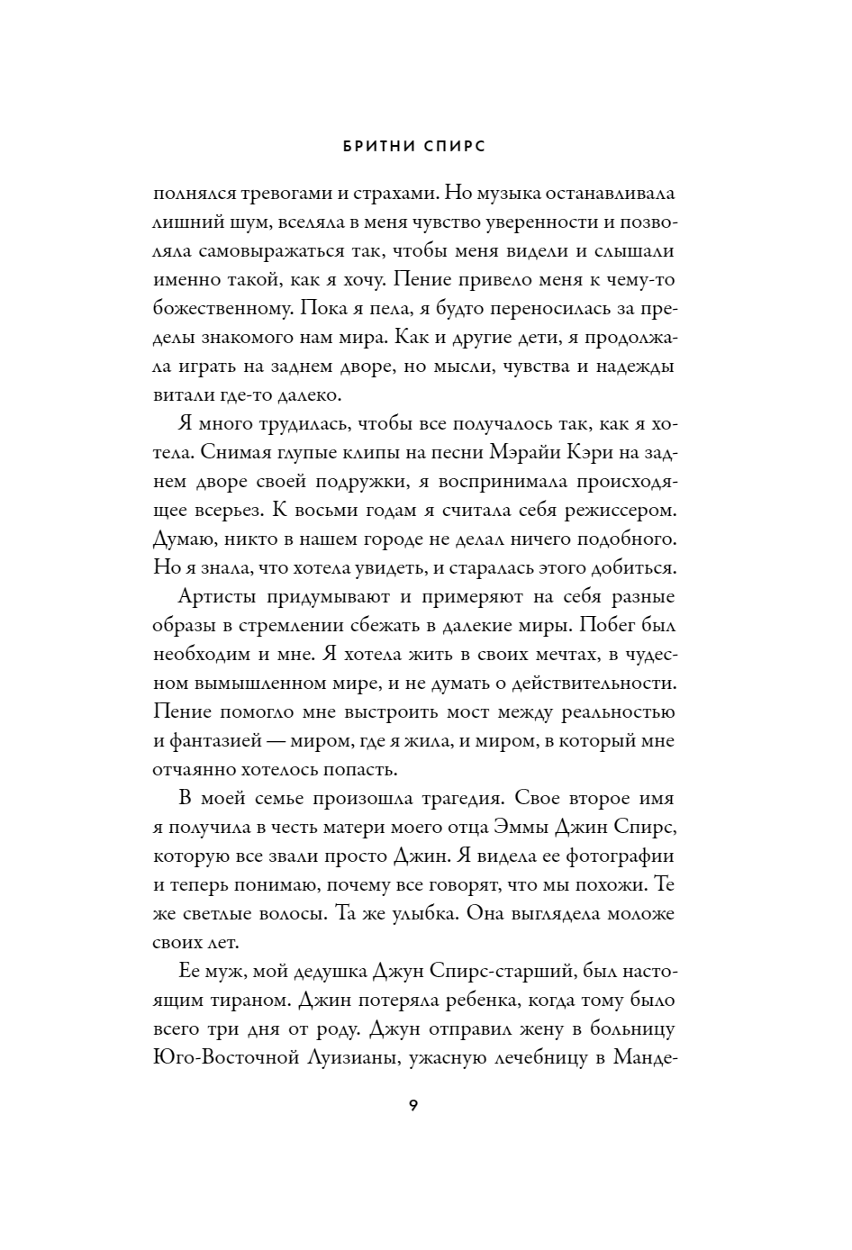 Бритни прошла через все это, сломавшись, но все-таки обретя себя. Искренняя история певицы демонстрирует исцеляющую силу музыки и любви. Это беспрецедентный монолог женщины, которая наконец получила право высказаться. И теперь ее голос по-настоящему услышал весь мир. Услышьте ее и вы.
