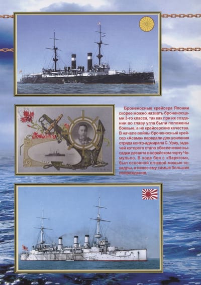 Для выполнения этого плана требовался сильный линейный флот. Второй частью основы японского флота стали броненосные крейсера. В каждом из флотов, который обладал кораблями этого класса, они создавались по проектам, которые имели свое назначение и свои особенности. В японском флоте, по мнению инженера капитана 1 ранга Нонака Суео, эти корабли должны были выполнять следующие функции и обладать следующими особенностями: «Крейсера делятся на два подкласса, первый из которых - броненосные крейсера, второй - бронепалубные. Броненосные крейсера - это большие скоростные военные корабли. Также их борта должны были быть забронированы». Японская судостроительная промышленность не могла справиться со строительством столь сложных кораблей, поэтому приняли решение заказать их на иностранных верфях. Большую часть серии построили в Англии, по одному крейсеру построили во Франции и Германии. Для них японцы не стали составлять единый проект, разрешив заводским конструкторам составить свои проекты, но при этом им не разрешалось отступать от задания. Поэтому одна из целей заказа крейсеров на иностранных верфях - знакомство с различными кораблестроительными школами - не была достигнута. Все шесть броненосных крейсеров были вооружены английскими орудиями. Фактически эти корабли оказались малыми линкорами. Японцы уже тогда, на стадии разработки программы, определили время начала войны с Россией.
