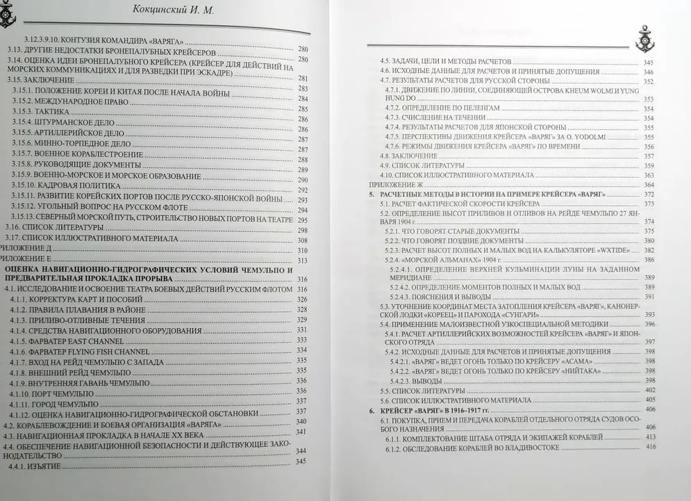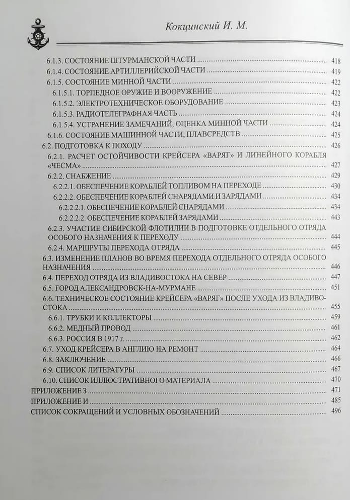 В монографии «Бронепалубный крейсер «Варяг»» освещаются спорные и малоизвестные факты биографии знаменитого корабля. Подавляющую часть источников составляют архивные материалы, старые руководящие документы и профессиональные издания по военно-морскому делу, юриспруденции и истории.