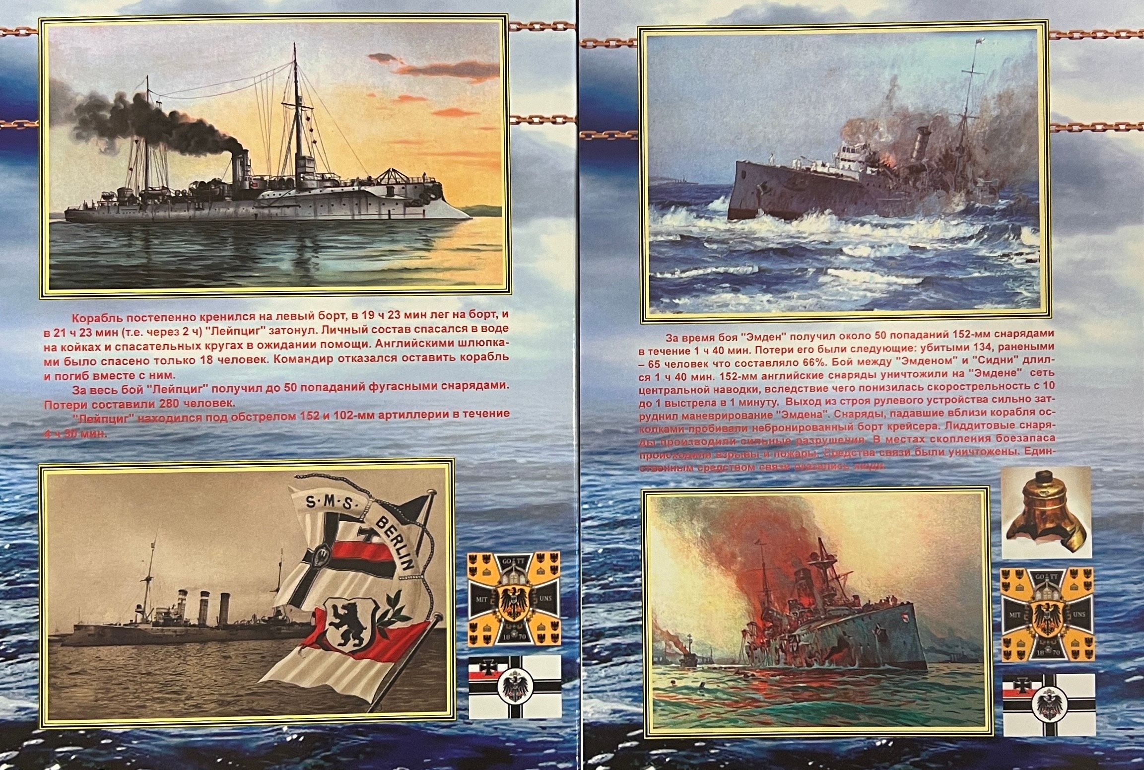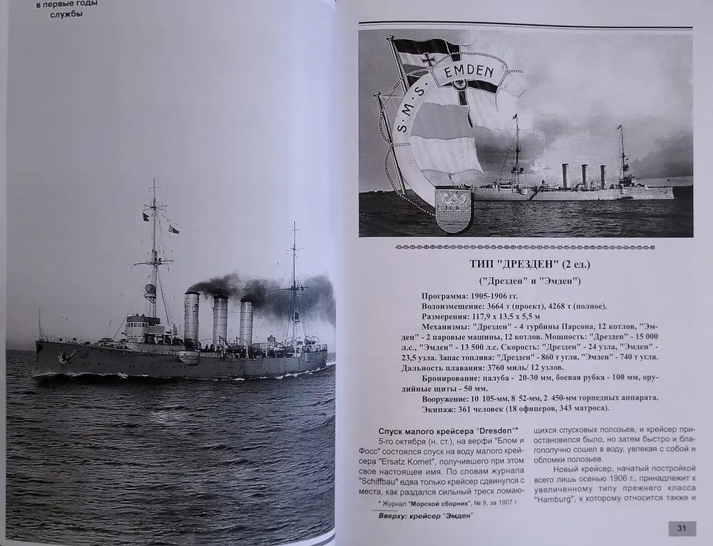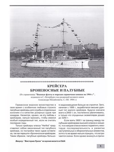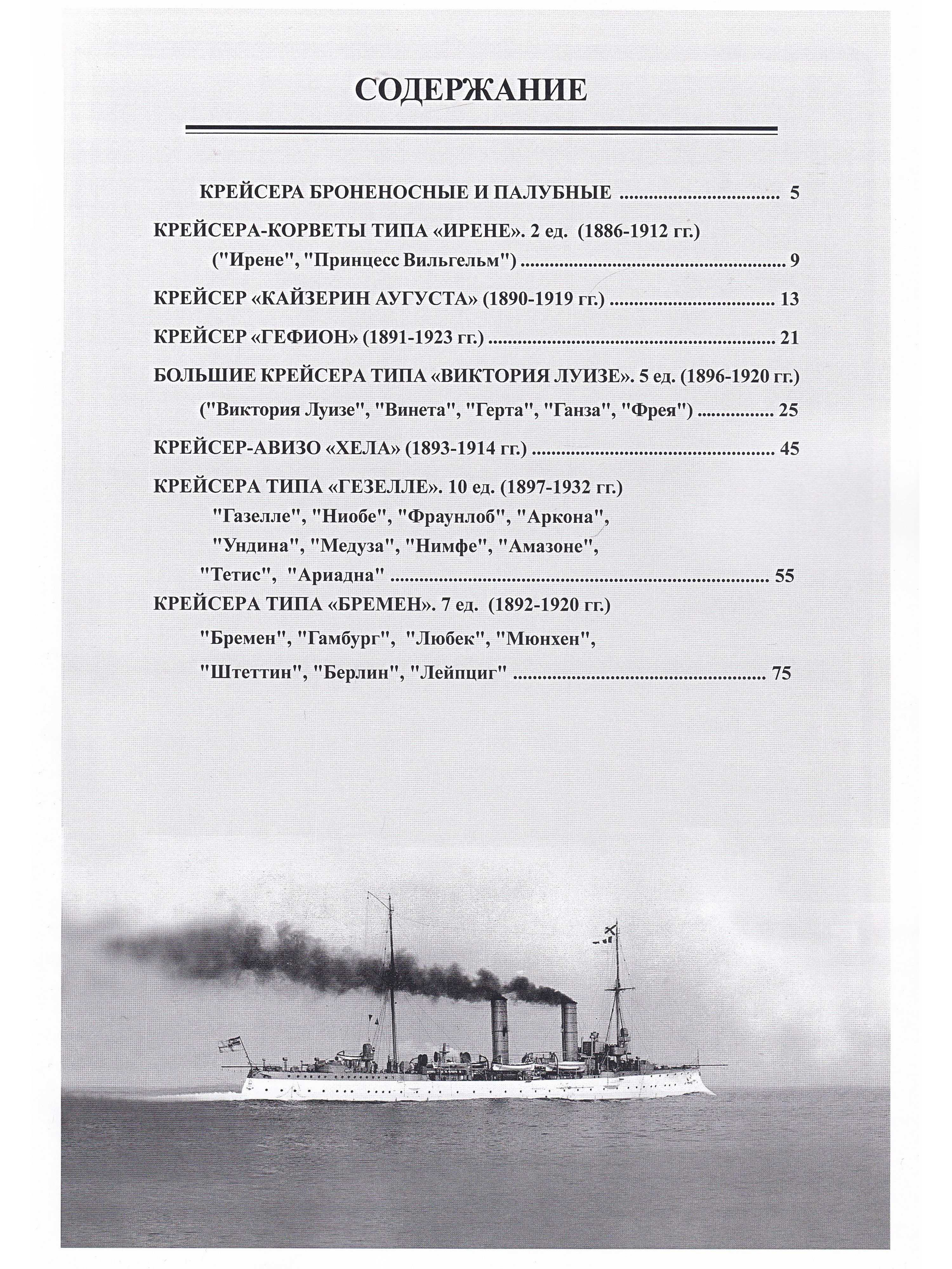 Книга посвящена истории проектирования, строительства и боевой службы бронепалубных крейсеров Германии, построенных в период с конца 1880-х гг. до 1906 гг. В первой части рассматриваются крейсера типов «‎Ирене»‎, «‎Кайзерин Аугуста»‎, «‎Гефион»‎, «‎Виктория Луизе»‎, «‎Хела»‎, «‎Газелле»‎ и «‎Бремен»‎; во второй части рассматриваются крейсера типов «‎Кенигсберг»‎, «‎Дрезден»‎, «‎Кольберг»‎ и «‎Пиллау»‎.