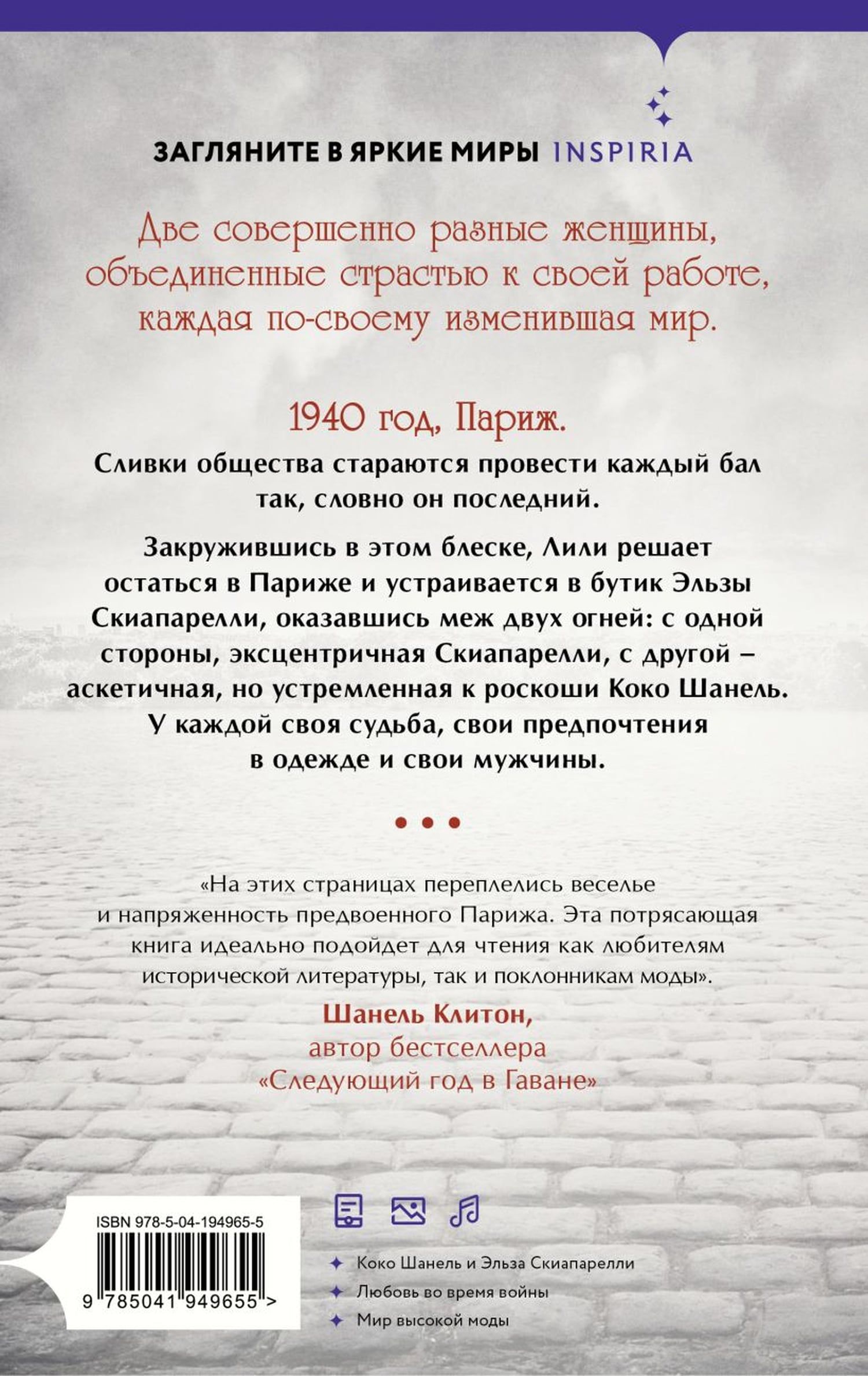 Закружившись в этом блеске, Лили решает остаться в Париже и устраивается в бутик Эльзы Скиапарелли, оказавшись меж двух огней: с одной стороны, эксцентричная Скиапарелли, с другой — аскетичная, но устремленная к роскоши Коко Шанель. У каждой своя судьба, свои предпочтения в одежде и свои мужчины.