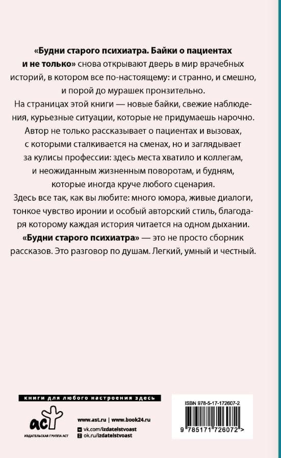 «Будни старого психиатра. Байки о пациентах и не только» снова открывают дверь в мир врачебных историй, в котором все по-настоящему: и странно, и смешно, и порой до мурашек пронзительно.
