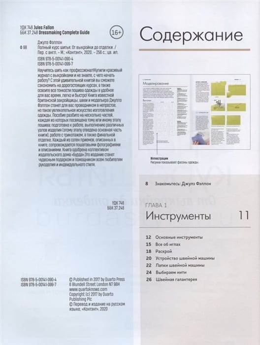 Купили красивый журнал с выкройками и не знаете, с чего начать работу? С этой удивительной книгой вы сможете сэкономить на дорогостоящих курсах, а также освоите все тонкости пошива одежды в удобное для вас время, легко и быстро! Книга известной британской закройщицы, швеи и модельера Джулз Фэллон станет для вас проводником в непростое, но такое увлекательное искусство изготовления одежды. Пособие разбито на несколько частей, каждая из которых посвящена тому или иному этапу пошива: подготовке к работе, выполнению различных узлов изделия (этому этапу отведена основная часть книги), работе с трикотажем, а также финальной отделке. Каждый из сотен приемов, описанных в книге, сопровождается пошаговыми фотографиями и описаниями. Книга одобрена коллективом издательского дома «Бурда». Это издание станет чудесным подарком и помощником всем любителям рукоделия и индивидуального стиля.