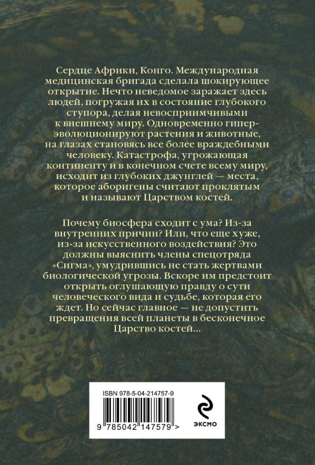 Почему биосфера сходит с ума? Из-за внутренних причин? Или, что еще хуже, из-за искусственного воздействия? Это должны выяснить члены спецотряда «Сигма», умудрившись не стать жертвами биологической угрозы. Вскоре им предстоит открыть оглушающую правду о сути человеческого вида и судьбе, которая его ждет. Но сейчас главное — не допустить превращения всей планеты в бесконечное Царство костей…