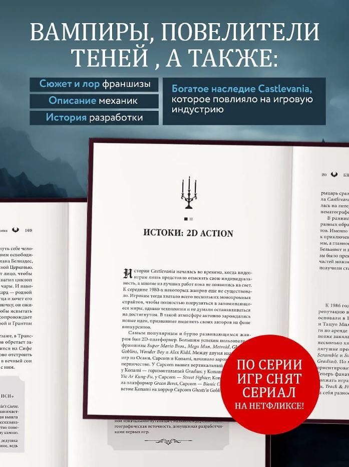 Узнайте, как эволюционировала сага — от платформера и исследования к элементам RPG и 3D-слэшеру. Внутри вас ждет не только сюжет и лор франшизы, но и описание механик, история разработки, а также примеры, как серия Castlevania повлияла на игровую индустрию.
