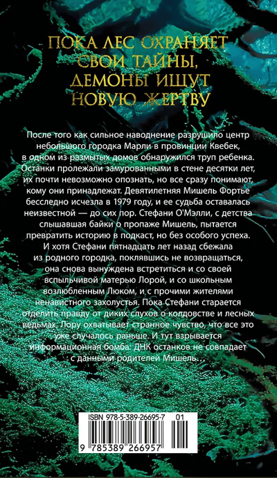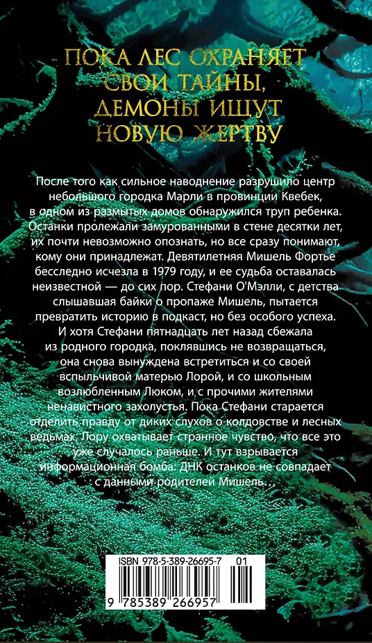 Сразу после выпускного бала Стефани сбежала из захолустного городка Марли в Монреаль, надеясь навсегда забыть пьющую мать Лору, нищую жизнь в убогом домишке, предателя-бойфренда и нелепые байки о ведьме, которая якобы обитает в окрестных лесах. Но спустя пятнадцать лет, потеряв работу журналистки, Стефани вынуждена вернуться в родную глушь. Она надеется оживить свой подкаст о пропавшей в 1979 году девятилетней Мишель Фортье — ведь после недавнего наводнения в стене заброшенного дома были обнаружены детские останки... Но чем глубже Стефани погружается в давние тайны, тем больше вязнет в трясине лжи, суеверий и негласных запретов. Неужели местные легенды не врут и городок действительно проклят?
