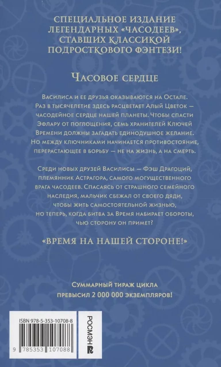 Специальное издание легендарного фэнтези-бестселлера «Часодеи». «Часовое сердце» – второй том волшебной сказки Натальи Щербы о любви и часовой магии, которой больше десяти лет зачитываются дети и подростки. Обложку украшает выборочный лак, тиснение и фольга, внутри книги четыре двусторонние вклейки с иллюстрациями.