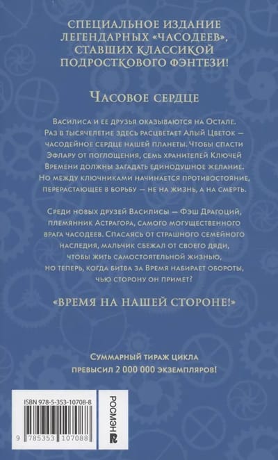 Василиса и ее друзья оказываются на Остале. Раз в тысячелетие здесь расцветает Алый Цветок – часодейное сердце нашей планеты. Чтобы спасти Эфлару от поглощения, семь хранителей Ключей Времени должны загадать единодушное желание. Но между ключниками начинается противостояние, перерастающее в борьбу – не на жизнь, а на смерть… Среди новых друзей Василисы – Фэш Драгоций, племянник Астрагора, самого могущественного врага часодеев. Мальчик сбежал от своего дяди и страшного семейного наследия. Но теперь, когда битва за Время набирает обороты, чью сторону он примет?