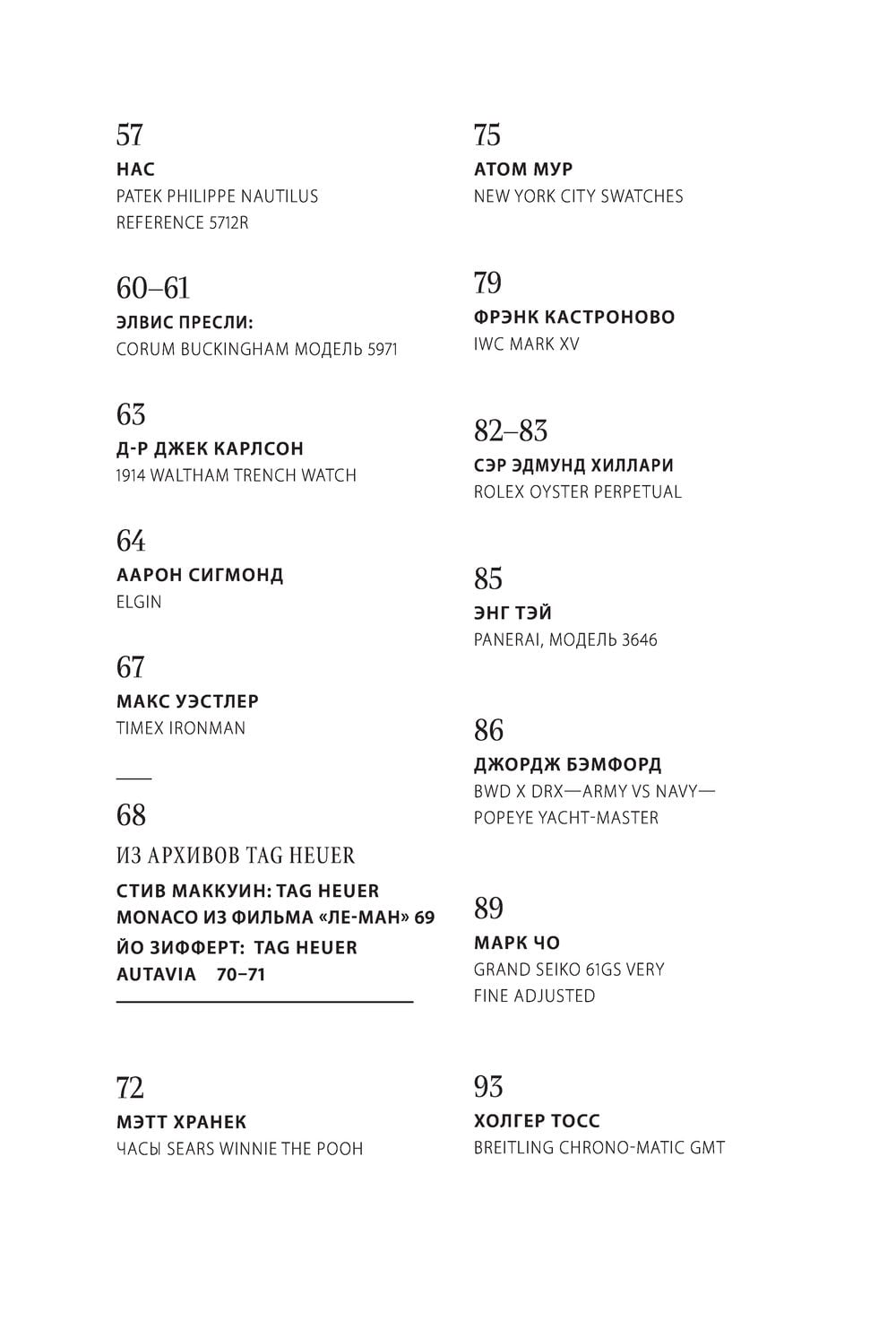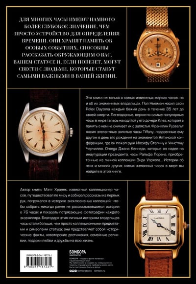 Легендарные, самые популярные, коллекционные часы, представленные в этой книге, - больше, чем просто устройства для определения времени. Они хранят память об особых событиях и знаменитых людях, которые их когда-то носили: Франклине Рузвельте, Джоне Кеннеди, Ральфе Лорене и многих других, чьи жизни и победы навсегда запечатлелись на циферблатах эксклюзивных часов. Вы погрузитесь в историю уникальных коллекций, прочтете никогда ранее не рассказанные истории о 76 часах и увидитепотрясающие фотографии каждого экземплары известных марок. Благодаря этим личным историям владельцев, часы стали больше, чем просто коллекционными предметами и символами статуса; они представляют собой исторические факты, новаторские достижения, семейные реликвии, подарки любви и дружбы на всю жизнь.