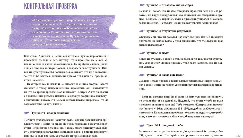 В подростковом возрасте человек впервые сталкивается с необходимостью самостоятельно планировать дальнейшую жизнь, ставить долгосрочные цели и брать ответственность за их исполнение. Серьезный вызов даже для взрослых, не правда ли? Вспомните себя подростком: вас кто-нибудь учил ставить цели, понимать себя и следовать своей мечте? Вряд ли. Скорее всего, вас воспитывали, давали необходимую информацию и пытались направлять. Но самое важное, что может дать подростку взрослый, - это помочь сформировать не знания, а так называемые метанавыки: умение общаться, слышать себя, понимать других, быть упорным, ставить цели и достигать их. Они помогут ребенку найти свой путь и добиться успеха в выбранном им деле. Эта книга написана для подростков, которые задумываются о будущем, но пока точно не знают, чего хотят. Она поможет определиться с устремлениями и наметить план достижения целей, научит мотивировать себя и вдохновит на подвиги.