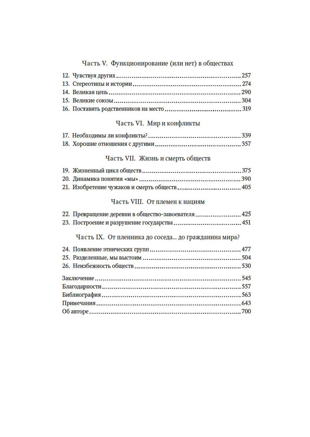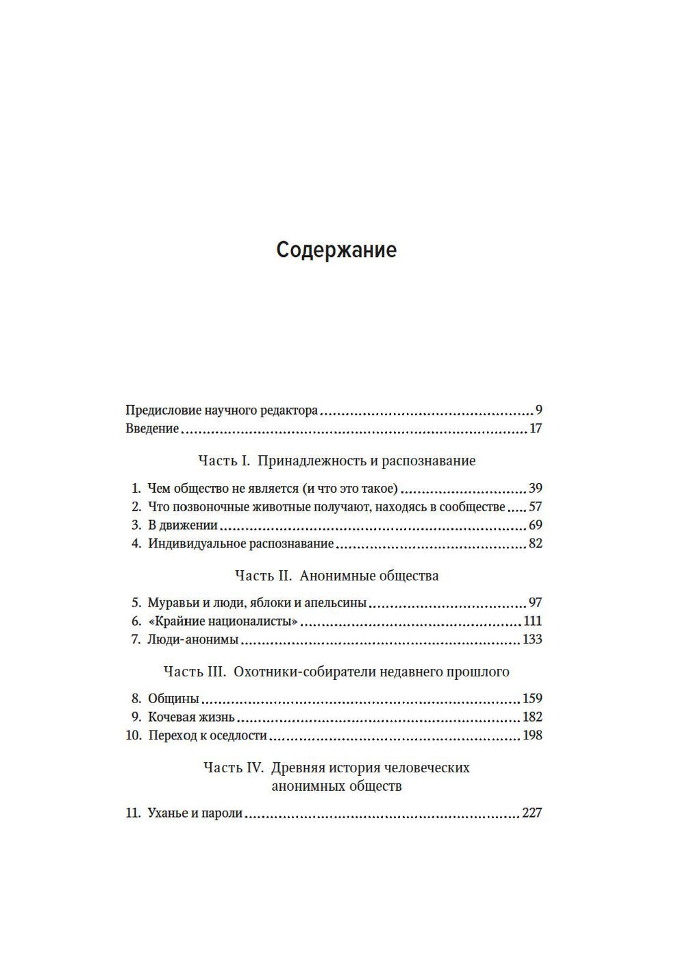 «Эта книга посвящена захватывающей и важной для любого человека теме — осознанию себя как части общества и рассмотрению самого феномена общества под лупой эволюционных процессов в животном мире. Марк Моффетт сравнивает человеческое общество с социальными образованиями общественных насекомых, и эти сравнения вполне уместны. И его последующий интерес к устройству социальных систем у широкого круга позвоночных, от рыб до человекообразных обезьян, не случаен. Как эволюциониста, его интересы связаны с выявлением причин и факторов, влияющих на трансформации социального поведения у разных таксонов, роли экологии в усложнении общественных связей, с поиском связей между морфологическими и психологическими преобразованиями, в конечном итоге приведших к возникновению нашего вида. Человека разумного, уникального в своем развитии речи, культуры, техники и искусства. Уникального в стремлении к познанию тайн бескрайней вселенной… Но продолжающего оставаться беззащитным в мире конфликтов и насилия, порожденном им же самим». (М. Л. Бутовская) «Несмотря на то что человечество перешло от небольших обществ к огромным, мы сохранили сверхъестественную способность понимать, кто им соответствует, а кто — нет. Хорошо это или плохо, но по причинам, которые я надеюсь прояснить, отличительные признаки остаются, наряду с такими же явными и зачастую разрушительными различиями, существующими внутри самих обществ. То, как мы подходим к рассмотрению сходств и отличий, определяет природу и будущее обществ». (Марк Моффетт)