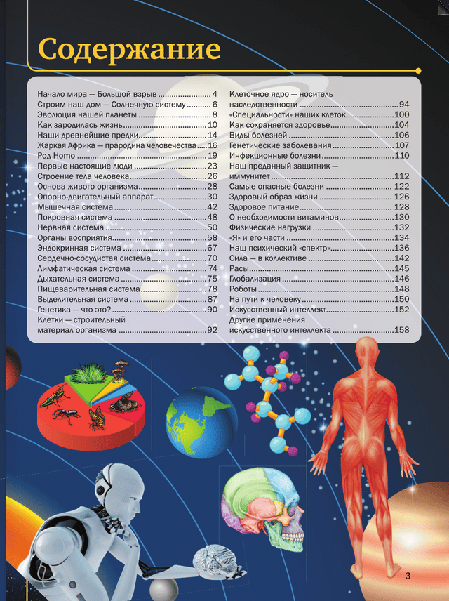 Эта 4D-энциклопедия с дополненной реальностью расскажет обо всех этапах становления человека - начиная с возникновения Вселенной и заканчивая той самой минутой, когда вы читаете эту книгу. Зарождение живых организмов и их эволюция, развитие первобытного человека и анатомия современного, механизмы наследственности и сила иммунитета, эмоции и чувства людей и бесстрастность роботов - все это вы найдете на страницах данного издания. А "живые" иллюстрации покажут, как функционирует сердце и где находится печень, заставят австралопитека помахать вам рукой из прошлого, а робота - исследовать космос, познакомят с самыми маленькими нашими "врагами" - вирусами и бактериями. Каждую анимацию дополняет познавательная звукозапись. Откройте эту необычную энциклопедию и узнайте больше о себе и мире, частью которого является каждый из нас.