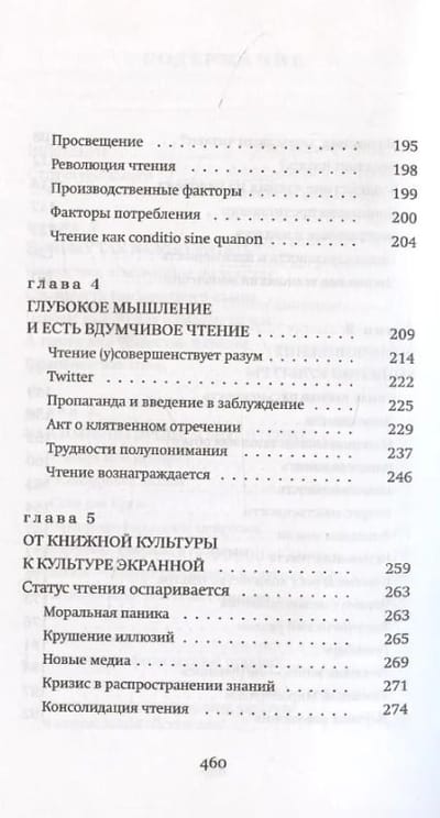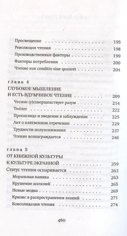 В книге описываются актуальные изменения в процессе чтения, рассказывается об истории происхождения литературы и о влиянии вдумчивого чтения на формирование критического мышления.