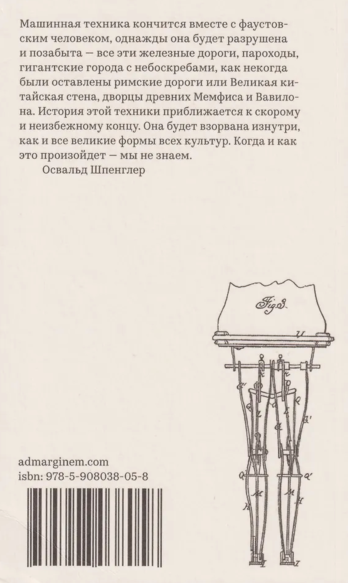 В небольшом эссе «Человек и техника» (1931) Освальд Шпенглер, продолжая начатые им в трактате «Закат Европы» рассуждения о цикличности мировой истории и упадке великих цивилизаций, впервые ставит вопрос о сущности техники. Рассматривая разные этапы развития человеческого общества, он отходит от распространенного инструментального понимания техники, подразумевая под ней любую целенаправленную деятельность, «тактику жизни», связанную с борьбой — ницшеанской волей к власти. Так, западноевропейская и североамериканская «фаустовская» культура подчинила себе природу и другие страны при помощи машинной техники, создав условия для неминуемого экологического коллапса. По мысли Шпенглера, народы Запада сами стали жертвой своих технологий: «Властелин мира сделался рабом машины».
