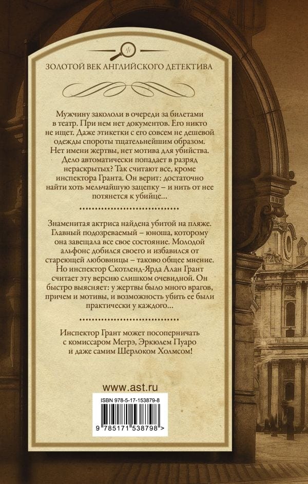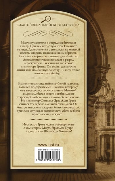 «Человек из очереди». Мужчину закололи в очереди за билетами в театр. При нем нет документов. Его никто не ищет. Даже этикетки с его совсем не дешевой одежды спороты тщательнейшим образом. Нет имени жертвы, нет и мотива для убийства. Дело автоматически попадает в разряд нераскрытых? Так считают все, кроме инспектора Гранта. Он верит: достаточно найти хоть мельчайшую зацепку – и нить от нее потянется к убийце… «Шиллинг на свечи». Знаменитая актриса найдена убитой на пляже. Главный подозреваемый – юноша, которому она завещала все свое состояние. Молодой альфонс добился своего и избавился от стареющей любовницы – таково общее мнение. Но инспектор Скотленд-Ярда Алан Грант считает эту версию слишком очевидной. Он быстро выясняет: у жертвы было много врагов, причем и мотивы, и возможность убить ее были практически у каждого…