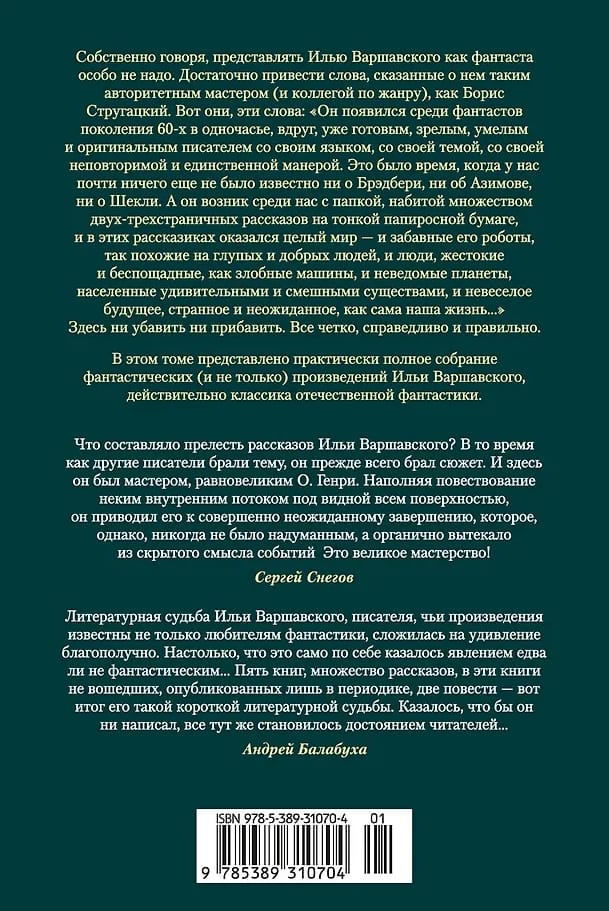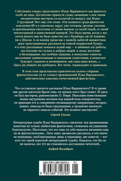 От нас, составителей, лишь заметим, что в этом томе представлено практически полное собрание фантастических (и не только) произведений Ильи Варшавского, действительно классика российской фантастики.
