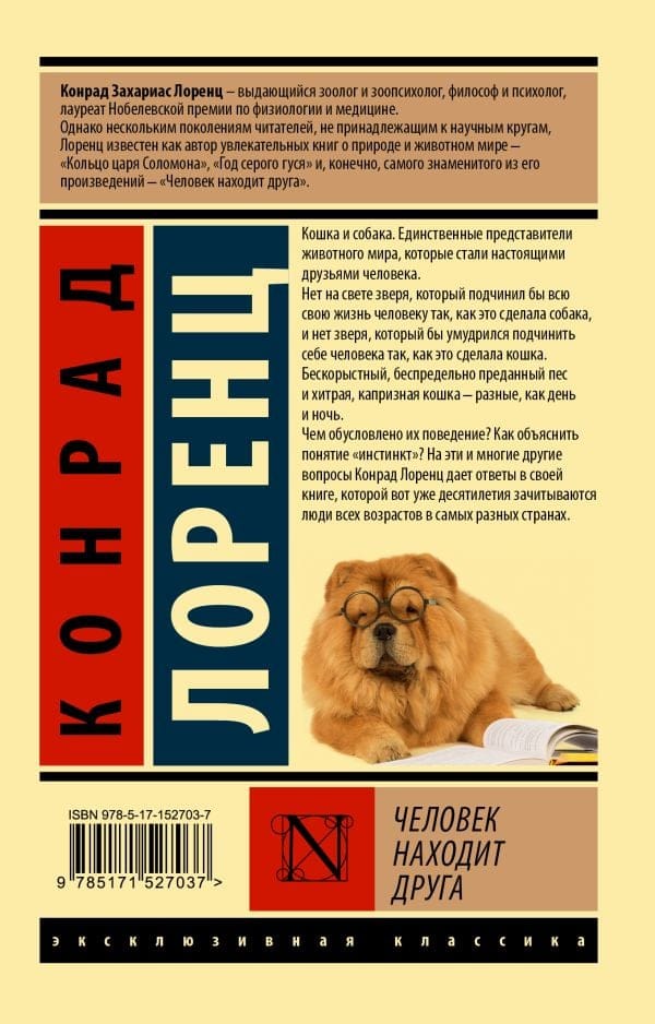 Нет на свете зверя, который подчинил бы всю свою жизнь человеку так, как это сделала собака, и нет зверя, который бы умудрился подчинить себе человека так, как это сделала кошка. Бескорыстный, беспредельно преданный пес и хитрая, капризная кошка — разные, как день и ночь. Чем обусловлено их поведение? Как объяснить понятие «инстинкт»? На эти и многие другие вопросы Конрад Лоренц дает ответы в своей книге, которой вот уже десятилетия зачитываются люди всех возрастов в самых разных странах.