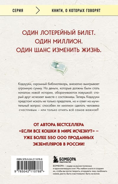 Кадзууки, скромный библиотекарь, выигрывает огромную сумму в лотерею. Но всё рушится, когда его старый друг, которому он доверяет управление деньгами, исчезает вместе с состоянием. В отчаянии Кадзууки отправляется на поиски — не только друга, но и ответа на главный вопрос: делают ли деньги нас по-настоящему счастливыми?