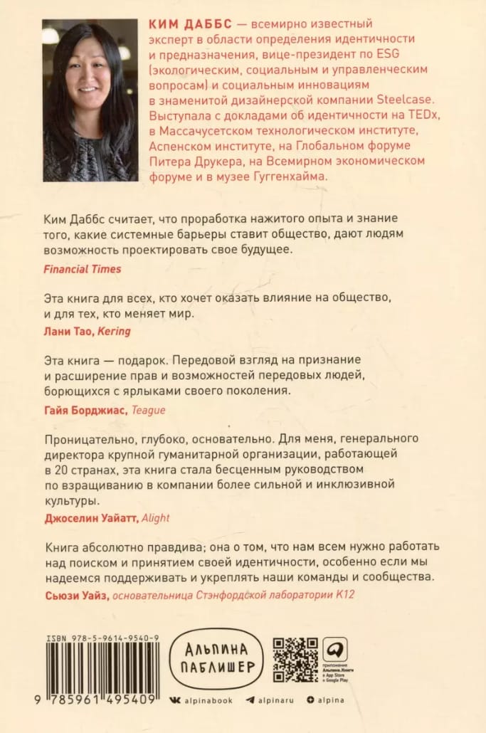 Ким Даббс, одна из ведущих мировых экспертов в области идентичности, рассказывает, как научиться определять и сохранять свое «я», преодолевать проблемы отчуждения, находить верные жизненные цели и пути их достижения. Прочитав эту книгу, вы получите проверенные инструменты для того, чтобы уверенно строить жизнь, оставаясь верными себе.