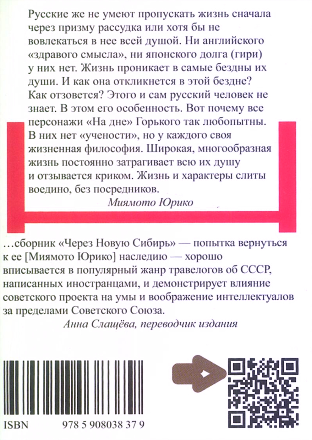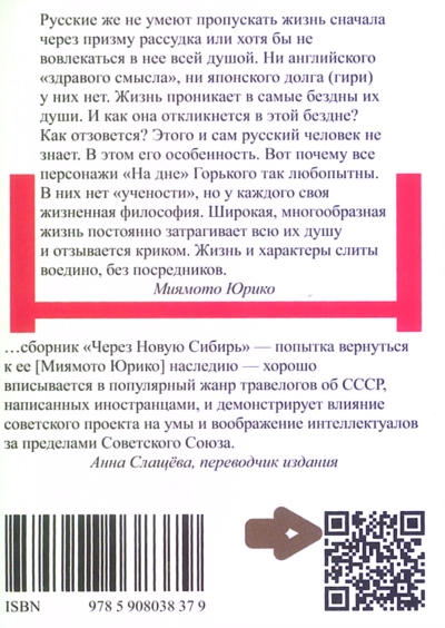 «Через Новую Сибирь» — сборник путевых заметок японской пролетарской писательницы Миямото Юрико (1899 —1951), оставившей после себя богатое, но ныне практически забытое творческое наследие. В 1927 году вместе с переводчицей-русисткой Юаса Ёсико она на протяжении трех лет путешествовала по СССР. Очерки Юрико полны красочных впечатлений от Москвы и Ленинграда, поездки по Транссибирской магистрали до самого Владивостока, а также точных наблюдений о жизни советских граждан, социальном устройстве страны, положении женщин и детей в обществе. Сравнивая СССР с буржуазной Англией, Юрико стремится рассказать своим японским читателям о преимуществах жизни при социализме. Но сегодня ее книга — уже не столько агитационное обращение автора к соотечественникам, сколько выразительный травелог, отражающий влияние советского проекта на умы и воображение иностранных интеллектуалов первой половины XX века.