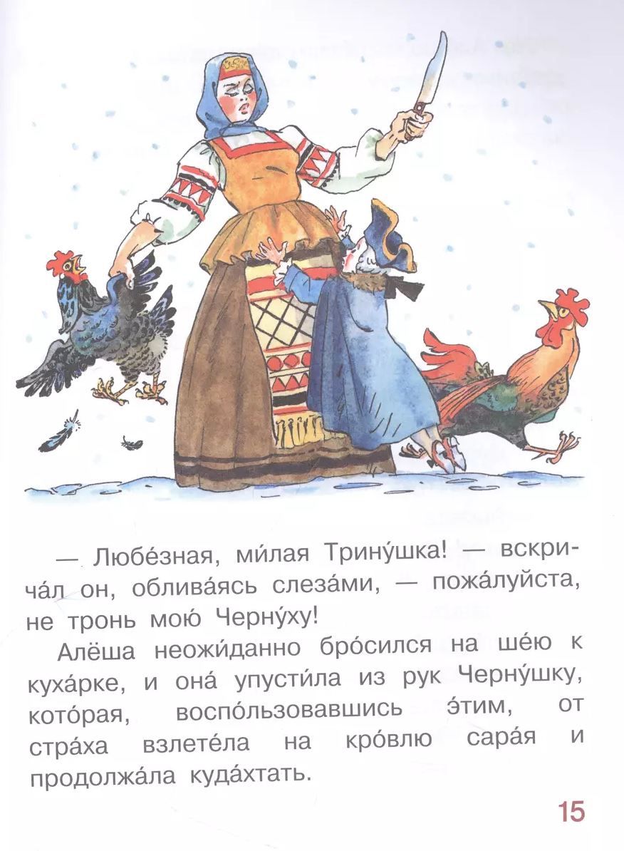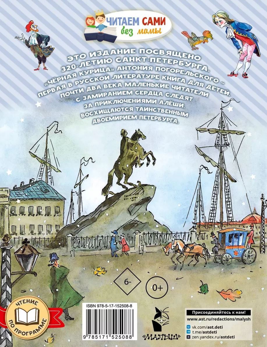 В этой книге маленькие читатели познакомятся с уникальным произведением отечественной детской литературы. Повесть «‎Чёрная курица, или Подземные жители»‎ Антония Погорельского (А. А. Перовского) считается одной из первых детских книг в истории русской литературы. Её любил читать маленький Лев Николаевич Толстой, а была она написана для его троюродного брата — будущего писателя Алексея Константиновича Толстого. Пейзажи Петербурга конца XVIII века соседствуют в повести с фантастическими картинами подземного королевства. Почти два века дети с замиранием сердца следят за приключениями Алёши, восхищаются таинственным двоемирием. Крупные буквы и ударения помогут девчонкам и мальчишкам самостоятельно прочитать любимую сказку.