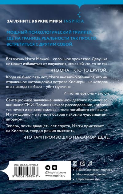 Когда ей было пять лет, Мэгги внезапно объявила, что на отдаленном шотландском острове Килмери — на котором она никогда не была — убит мужчина. И что теперь она — это он. Сенсационное заявление маленькой девочки привлекло внимание СМИ. Полиция начала расследование, которое так ничем и не закончилось, — тело погибшего не нашли. И немудрено — в ту ночь остров накрыло чудовищным штормом…