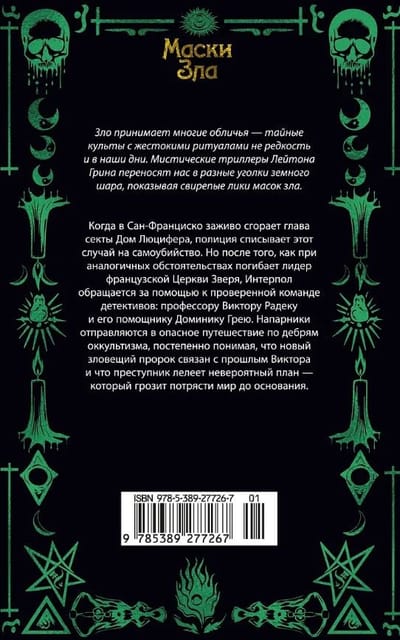 У детективов Виктора Радека, профессора религиозной феноменологии, и Доминика Грея, бывшего морпеха, особая специализация: они расследуют преступления, связанные с таинственными и необъяснимыми явлениями. Их ждет очередное жуткое дело: загадочная фигура в черной мантии сжигает лидеров скандальных сатанинских сект. И хотя впору подумать о потусторонней каре за грехи, у напарников другое мнение…