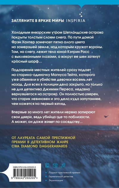 Холодным январским утром Шетландские острова покрыты толстым слоем снега. По пути домой Фрэн Хантер замечает пятно алого цвета на замерзшей земле, над которым кружат вороны. Там, на снегу, лежит тело юной Кэтрин Росс с выклеванными глазами, а вокруг ее шеи затянут красный шарф…