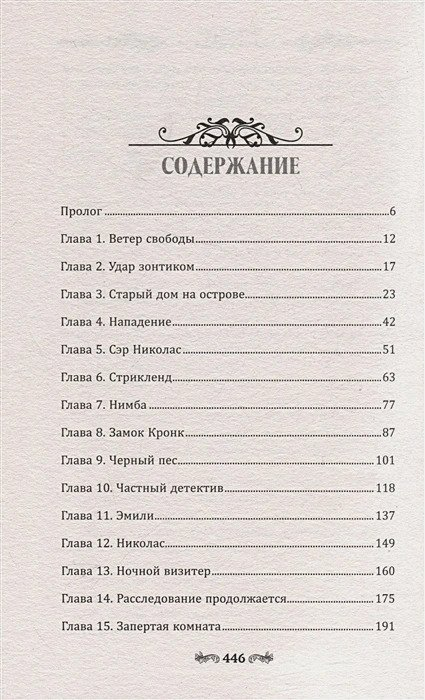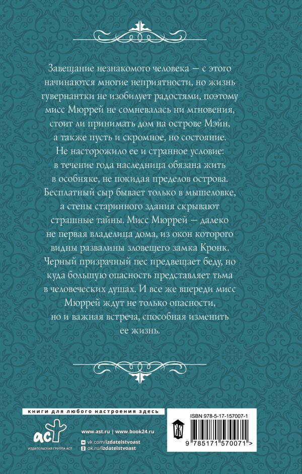 Завещание незнакомого человека — с этого начинаются многие неприятности, но жизнь гувернантки не изобилует радостями, поэтому мисс Мюррей не сомневалась ни мгновения, стоит ли принимать дом на острове Мэйн, а также, пусть и скромное, но состояние. Не насторожило ее и странное условие: в течение года наследница обязана жить в особняке, не покидая пределов острова. Бесплатный сыр бывает только в мышеловке, а стены старинного здания скрывают страшные тайны. Мисс Мюррей — далеко не первая владелица дома, из окон которого видны развалины зловещего замка Кронк. Черный призрачный пес предвещает беду, но куда большую опасность представляет тьма в человеческих душах. И все же впереди мисс Мюррей ждут не только опасности, но и важная встреча, способная изменить ее жизнь.