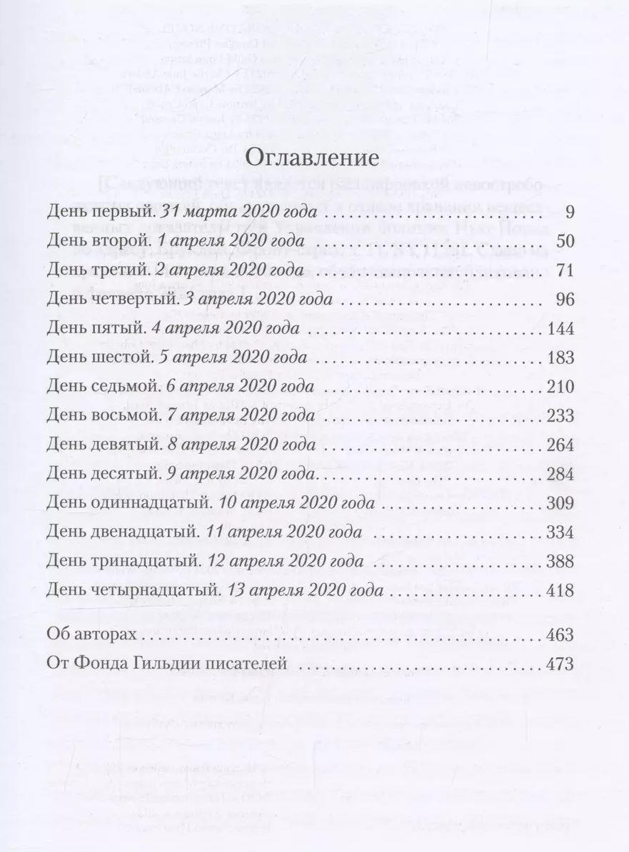 «Четырнадцать дней» — уникальный роман в новеллах, созданный 36 авторами под редакцией таких признанных мастеров, как Маргарет Этвуд и Дуглас Престон, и при поддержке Гильдии писателей США. Книга названа событием в мире литературы — это своего рода головоломка, напоминающая великий роман-эксперимент Жоржа Перека «Жизнь, способ употребления». В числе участников грандиозного проекта, помимо уже названных, — целое созвездие блестящих имен: Тесс Герритсен, Джон Гришэм, Дэйв Эггерс, Селеста Инг, Эмма Донохью и др. Нашествие вируса в 2020 году посеяло не меньшую панику, чем в Средние века. Были те, кто, подобно героям «Декамерона», бежал из больших городов, а кому-то бежать было некуда и пришлось самоизолироваться в четырех стенах. Напуганные локдауном жильцы нью-йоркской многоэтажки по ночам выбираются на крышу, чтобы рассказывать и слушать истории. Кто-то вспоминает о леденящем контакте с призраком, кто-то вдохновенно читает стихи Марины Цветаевой, а вот этот сосед толкует о том, как научить враждующих кроликов уживаться друг с другом... На импровизированные собрания приходит все больше народу, не подозревая о том, что каждая история тайно записывается одним из присутствующих и сопровождается комментарием. Чем закончатся все эти разговоры?..