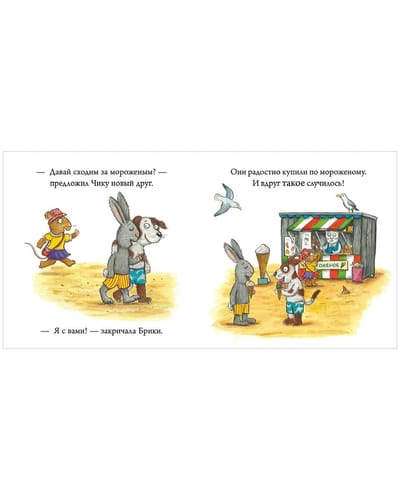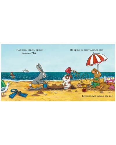 Что вас ждет под обложкой:  Очень добрая история о том, как важно в любой ситуации оставаться верным другом!  Когда у Чика появился новый приятель, Брики показалось, что про неё совсем забыли.  Бедная Брики! Но тут прилетела жадная чайка…  Гид для родителей:  Серия "Чик и Брики" - это трогательные  и очень правдивые истории про двух друзей, которые учат малышей деликатности, такту, доброте, умению дружить и прощать ошибки.  Изюминки:  · Зайчика Чика и мышку Брики придумал и нарисовал всемирно известный художник Аксель Шеффлер, создатель знаменитого Груффало.  • Отличное качество полиграфии, твердая обложка, плотные страницы.  • Удобный формат – можно взять книгу с собой.  • Рекомендованный возраст: 1-3 года.