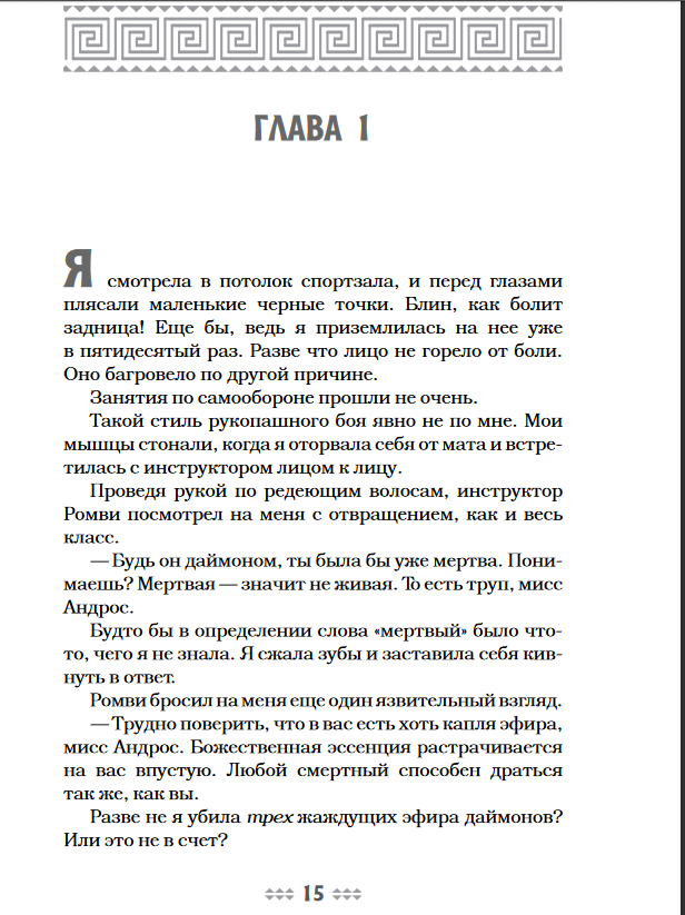 Ради своей подготовки Александрия готова пойти на любые жертвы, но следующий за ней повсюду Сет действует ей на нервы. Он следит за ее тренировками, ждет ее после занятий и частенько появляется у нее в спальне, что особенно раздражает. Правда, в этой связи есть один несомненный плюс: она спасает Алекс от ночных кошмаров. Еще бы она помогла приглушить чувства девушки к чистокровному по имени Эйден, и было бы отлично.
