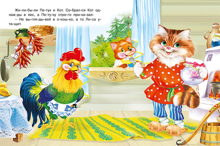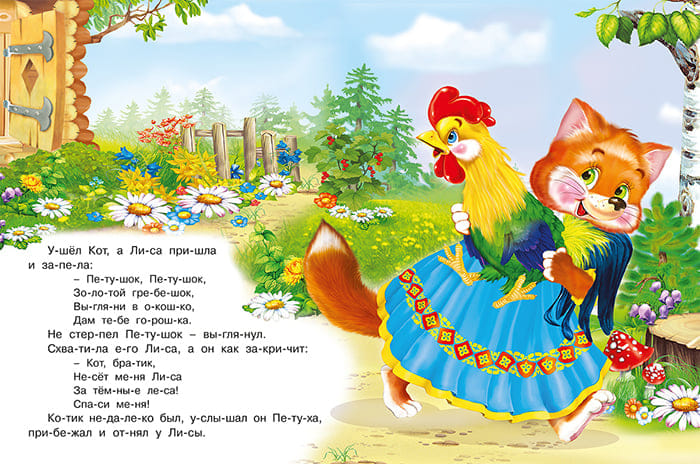 Читаем по слогам. Кот, петух и лиса