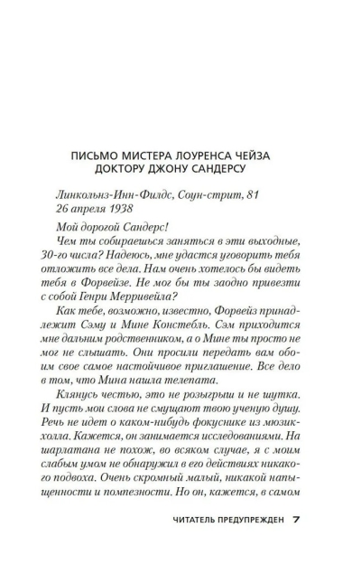 Роман «Читатель предупрежден» продолжает серию о расследованиях Генри Мерривейла, эксцентричного толстяка, который был признан одним из самых неординарных сыщиков в детективной литературе. Хозяин загородного дома в Суррее умирает на глазах у гостей по неизвестной причине, и медицина бессильна дать этому объяснение. Дело осложняется тем, что его смерть была предсказана одним из гостей, загадочным «телепатом», который уверяет, что совершить убийство можно с помощью мысли.