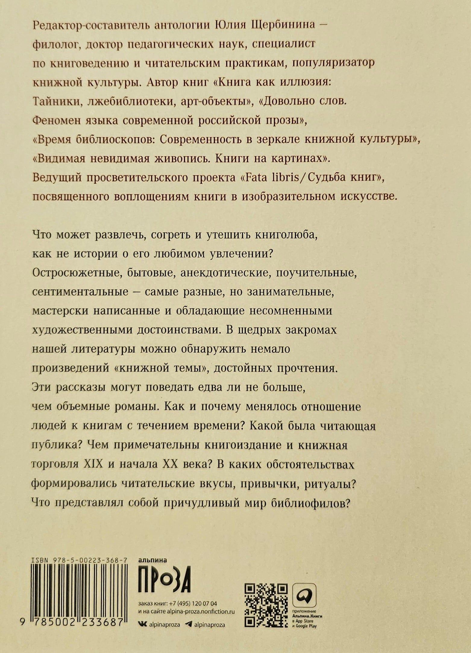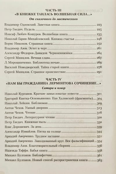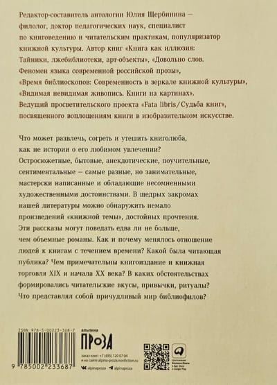 Эта книга — увлекательное путешествие в мир русской литературы, где главная героиня — сама книга. В антологии Юлии Щербининой собраны самые разные истории: от реалистичных зарисовок до мистических новелл, от сатирических сценок до трогательных воспоминаний о детстве. Пять разделов антологии расскажут о том, какую роль играла книга в жизни разных слоев общества, как работала книжная торговля, где за раритетные издания платили целые состояния и какие легенды придавали книгам мистический флер. В антологии представлены как широко известные российские авторы XIX–XX веков (И. Гончаров, А. Чехов, А. Куприн, М. Горький), так и полузабытые, чьи произведения также полны очарования.